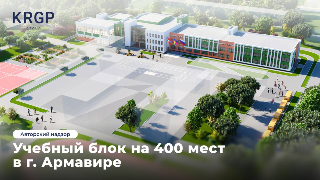 На территории школы №4 в Армавире продолжается строительство нового учебного корпуса на 400 мест. Проект разработан нашей командой ГК KRGP. Мы также ведём авторский надзор за реализацией.