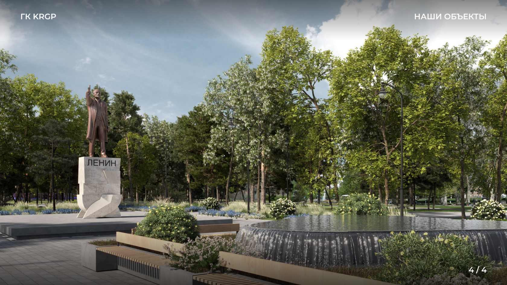 Проект предусматривает устройство пешеходных зон, благоустройство детских и спортивных площадок, скейтпарка, территории Краеведческого музея, устройство фонтанов.